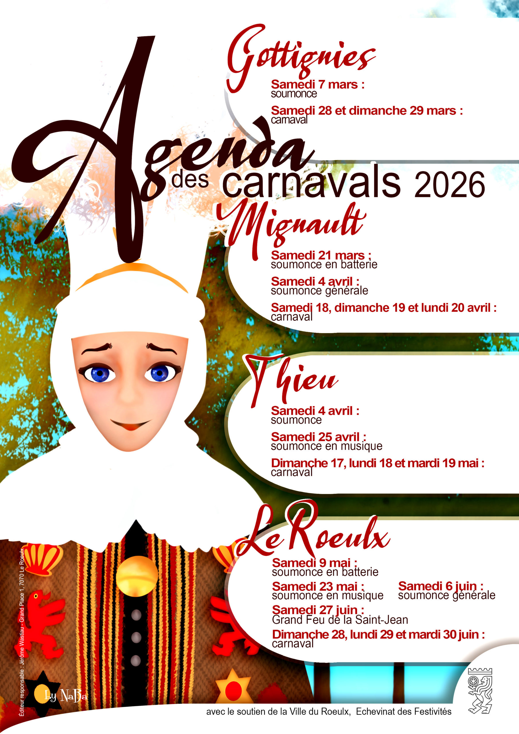 Découvrez les dates des soumonces et carnavals de l’entité du Roeulx et notez-les dès à présent dans votre agenda !